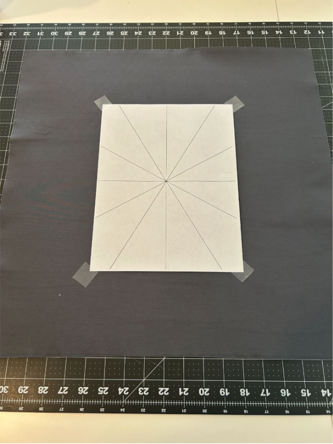 I lined up my template with the center of my fabric. I did this by using a sewing pin and poking it through the center of the template . . .