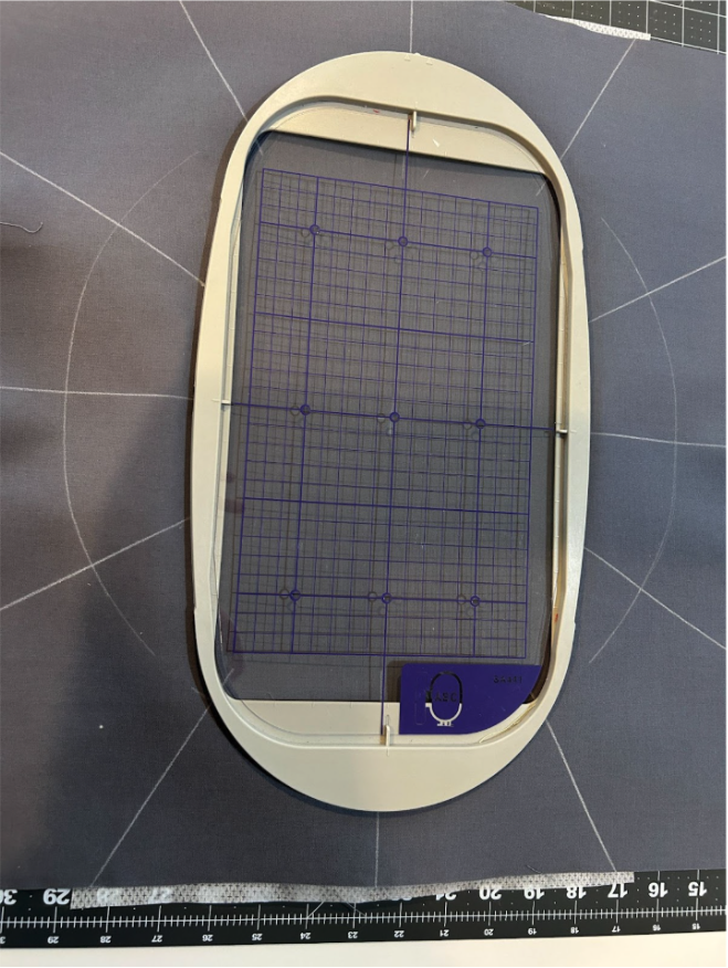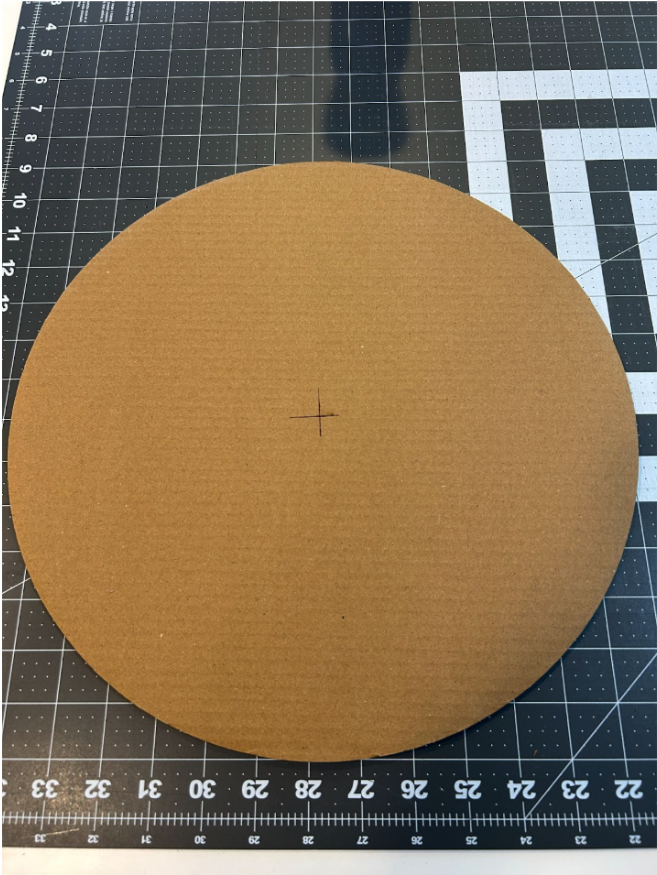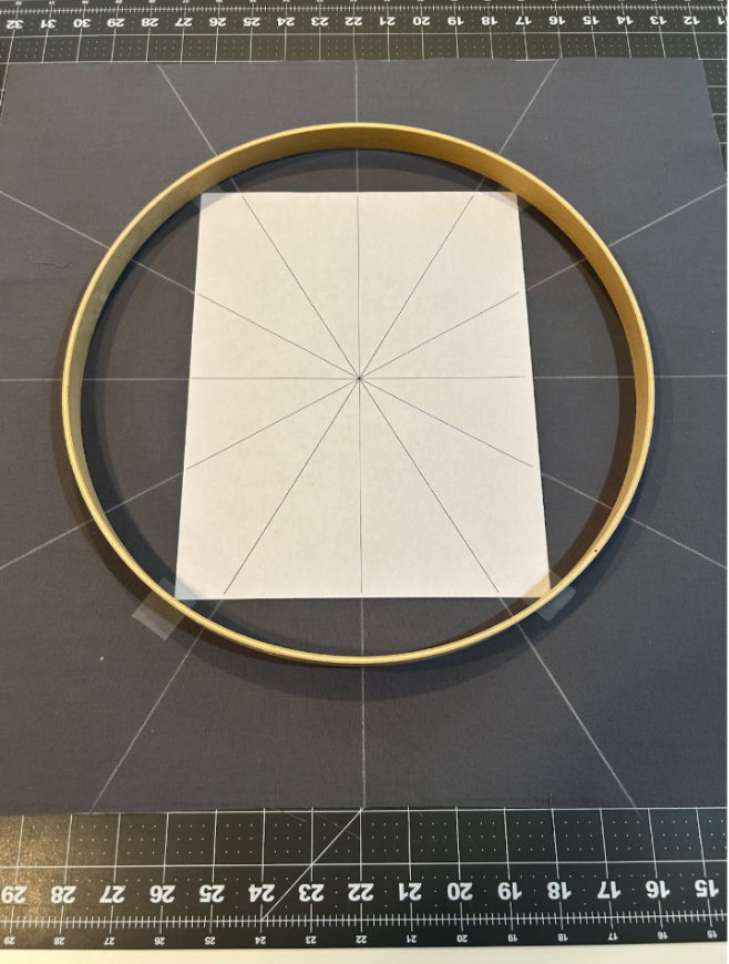 Remove the cardboard from the hoop and find and mark the center of the circle. I did this by placing it on my cutting mat so the edges touched and using my ruler to mark halfway up from the center lines.