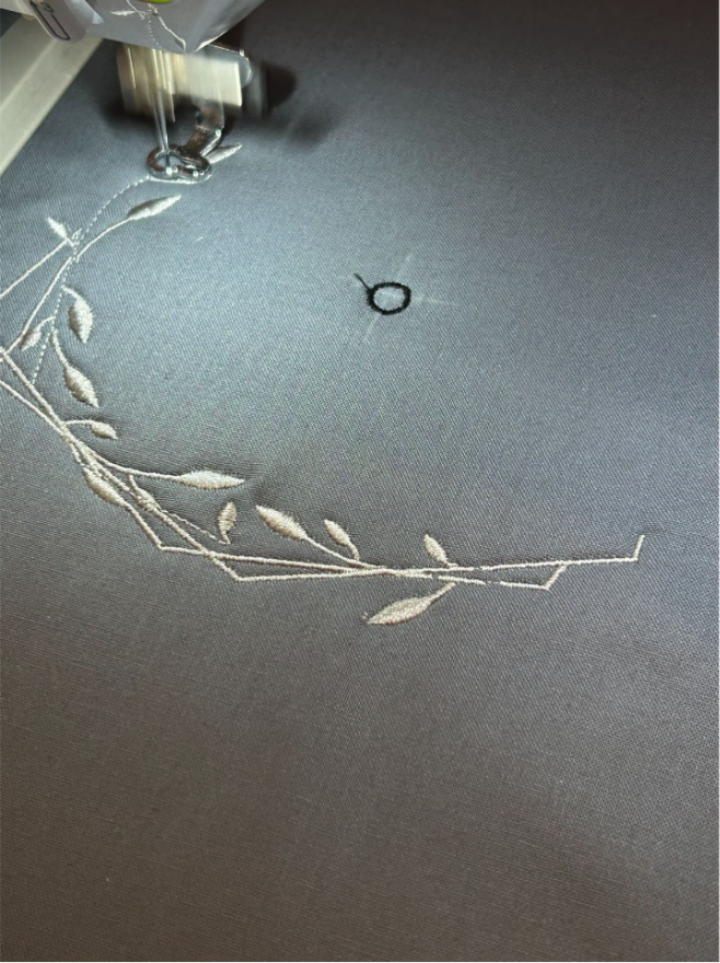 Stitch a lowercase “o” in the Office Embroidery Font in the center of the design. This is where the clock mechanism will come through the fabric.