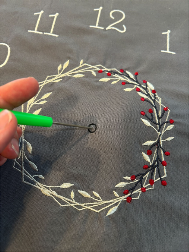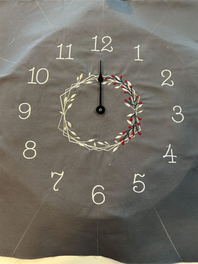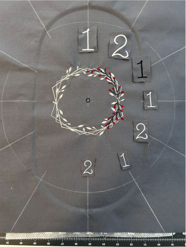 Stitch out the number and continue around the clock until all the numbers are completed.