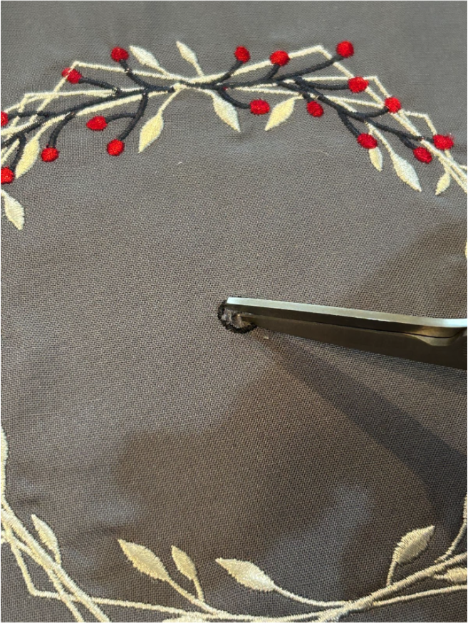 Pull it tight before you secure the thread. This pulls the excess fabric to the back of the hoop.