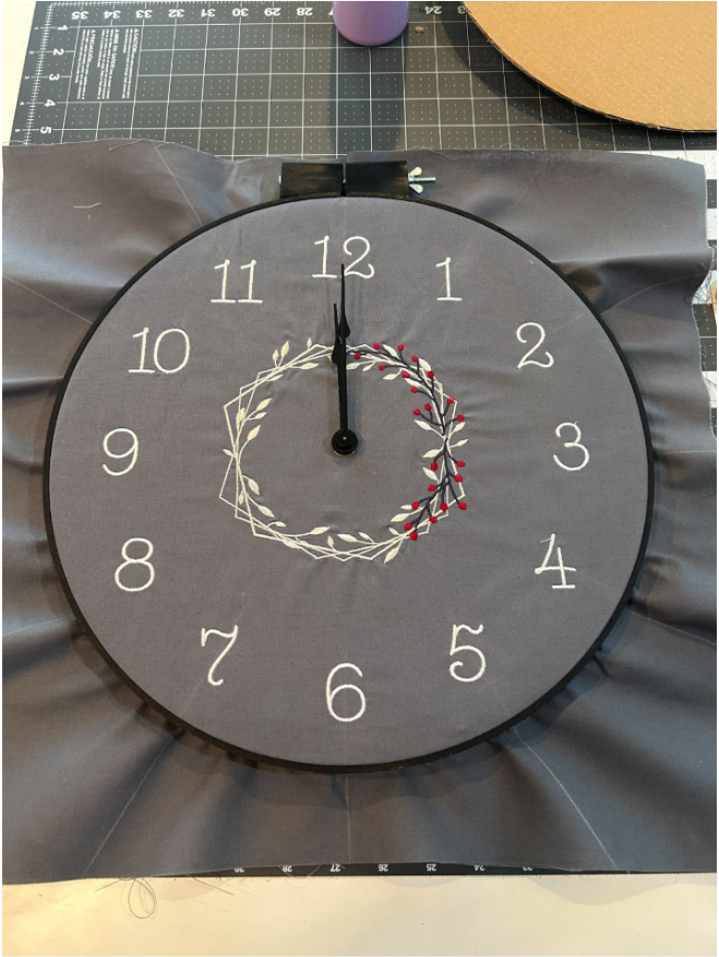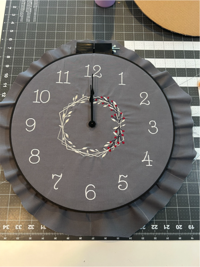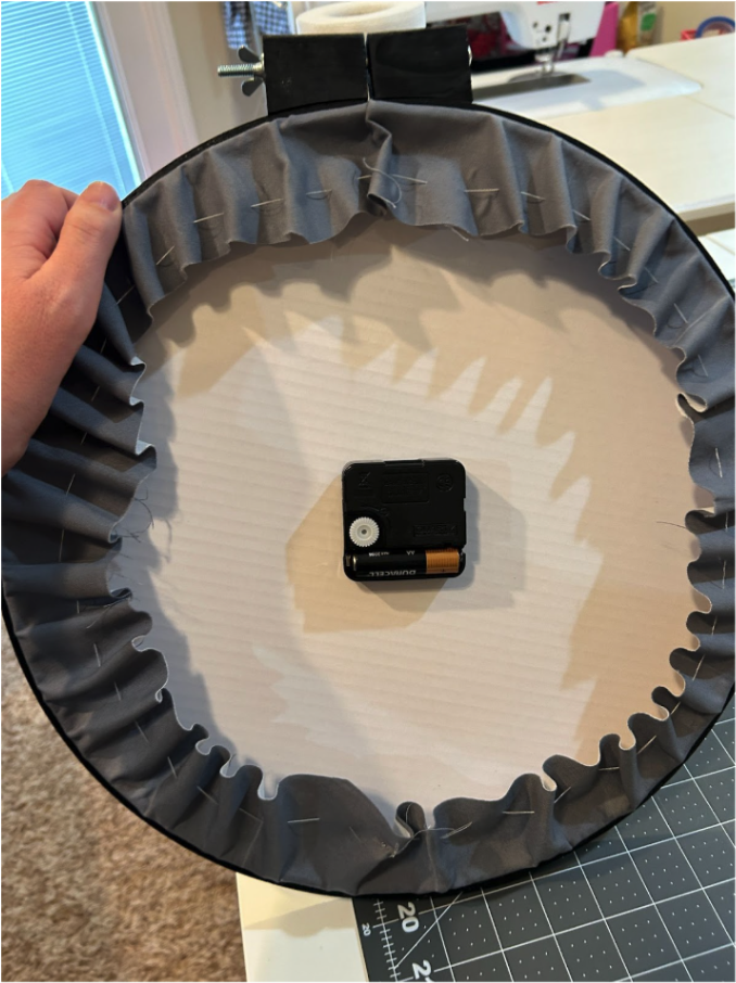Now it’s time to assemble our clock. This is the fun part where everyone wonders how you turned a piece of fabric into a functional clock!