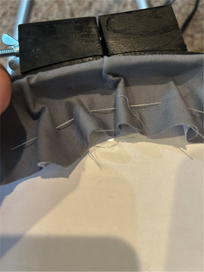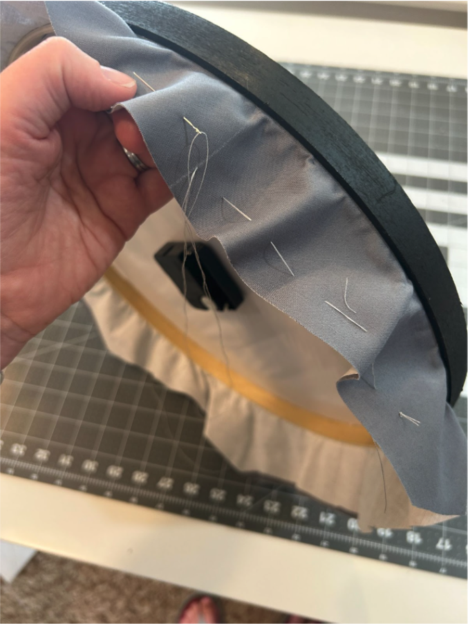 To make a nice backing for the clock I used a needle and thread to do a big gathering stitch around the edge of the fabric.