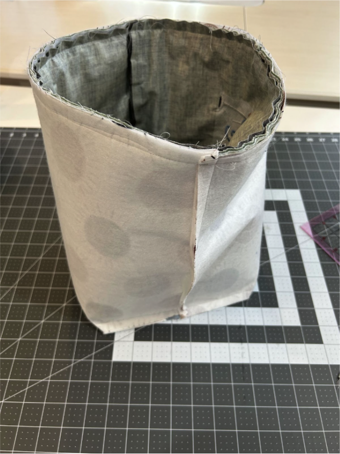 Take it to your machine and stitch completely around the top with a ½” seam allowance.