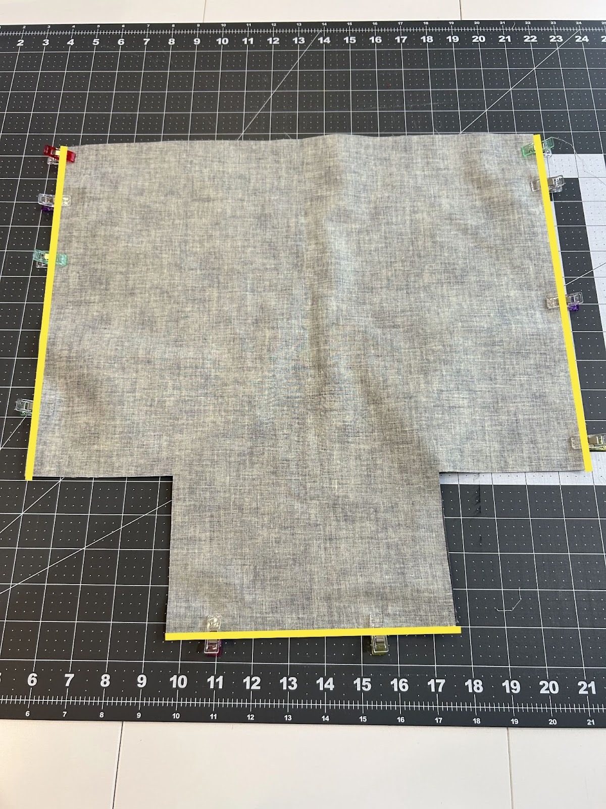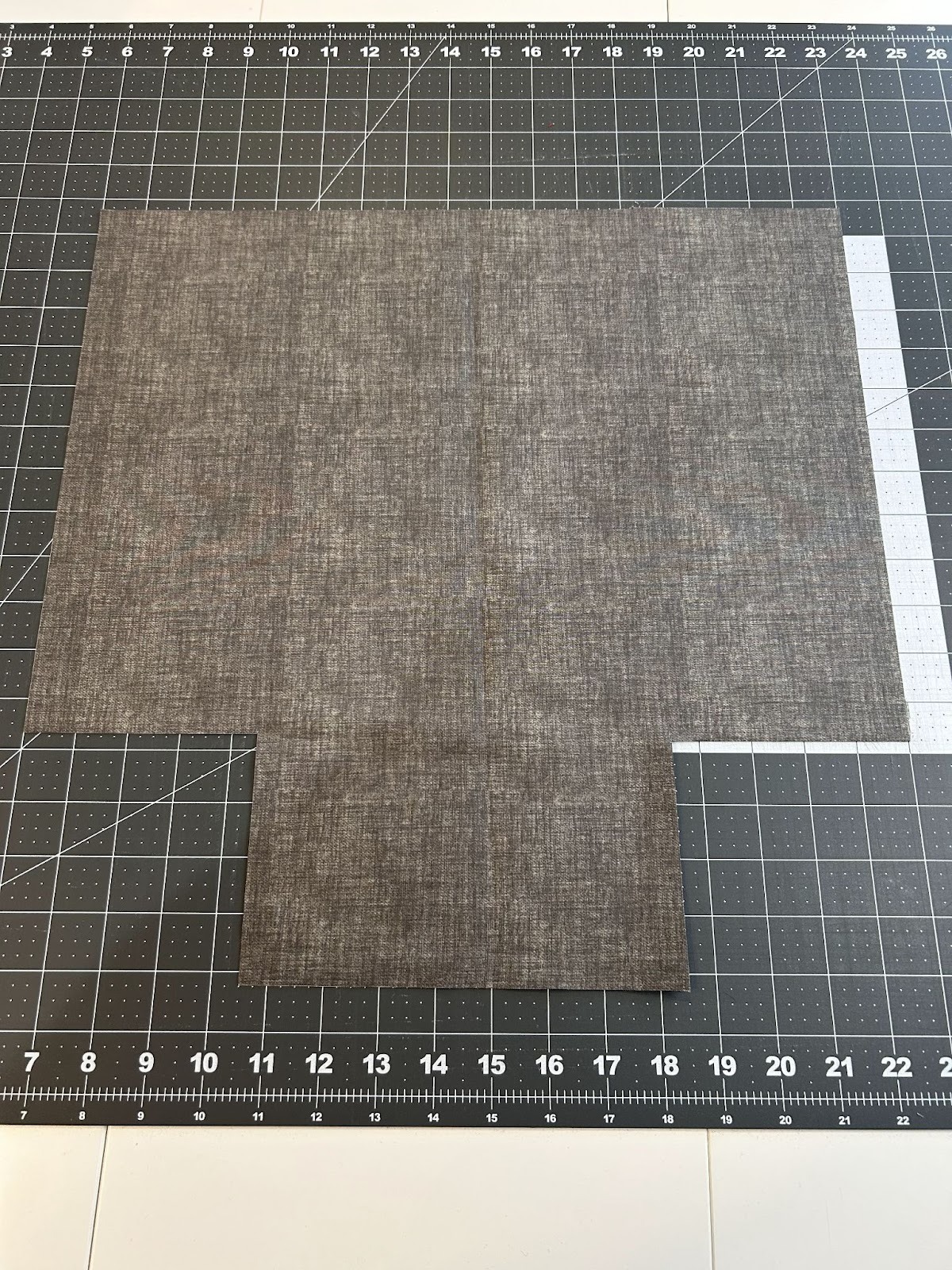 Cut 4½” squares from the two bottom corners of each 17" x 17" fabric piece. You should now have both pieces with a 4½” square removed from each bottom corner. This will help us box the corners so the bag will stand up.