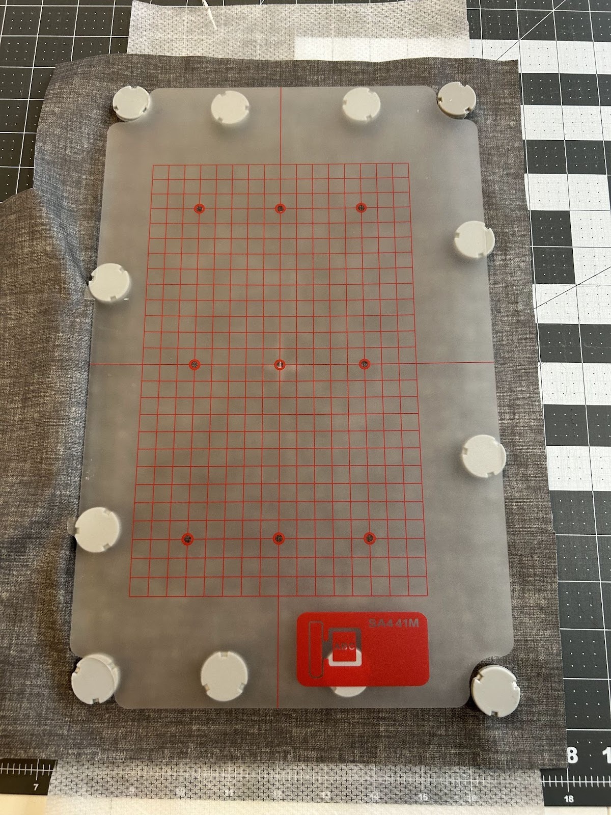 I use my hooping guide to ensure my fabric is placed where I want it in my hoop with the centers lining up.