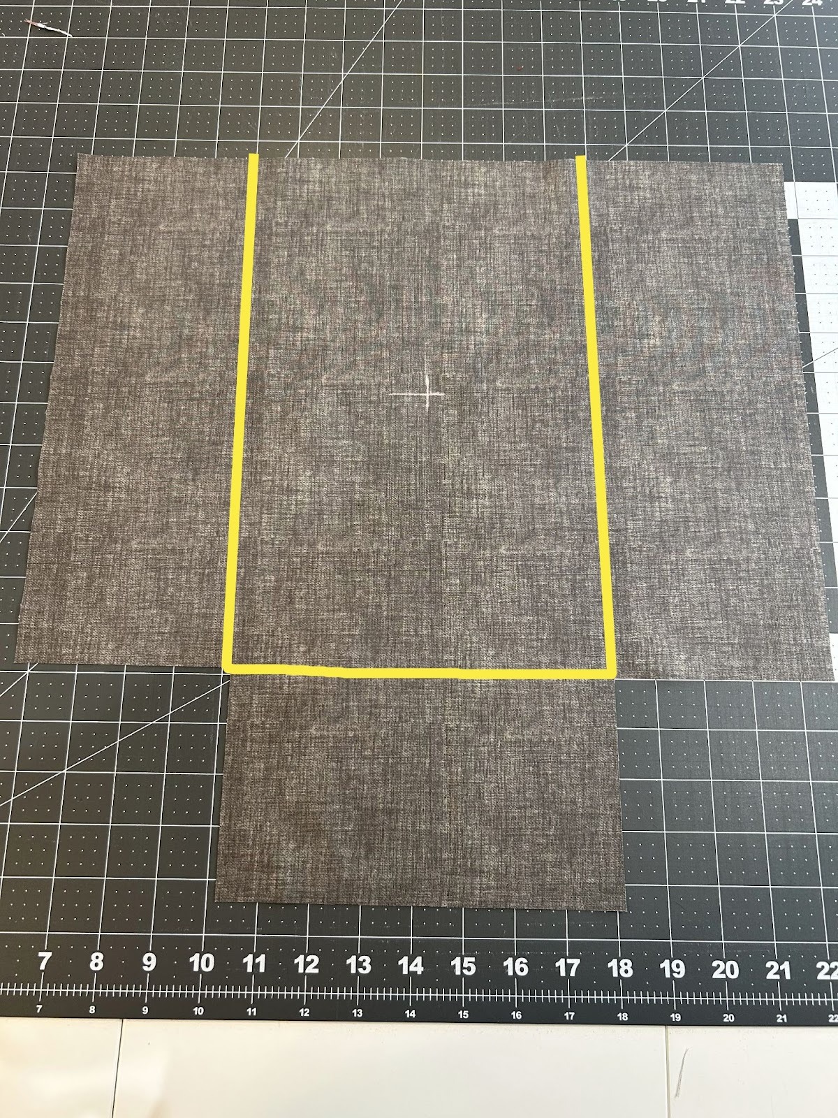 Now we will get our front panel ready for embroidery. We want to find the center for our design within the center part of the panel. The outside flaps will be for the bottom and sides of our bag. It’s not a super structured bag so if your design overlaps the sides, it’s okay. Keep it away from the bottom flap though.