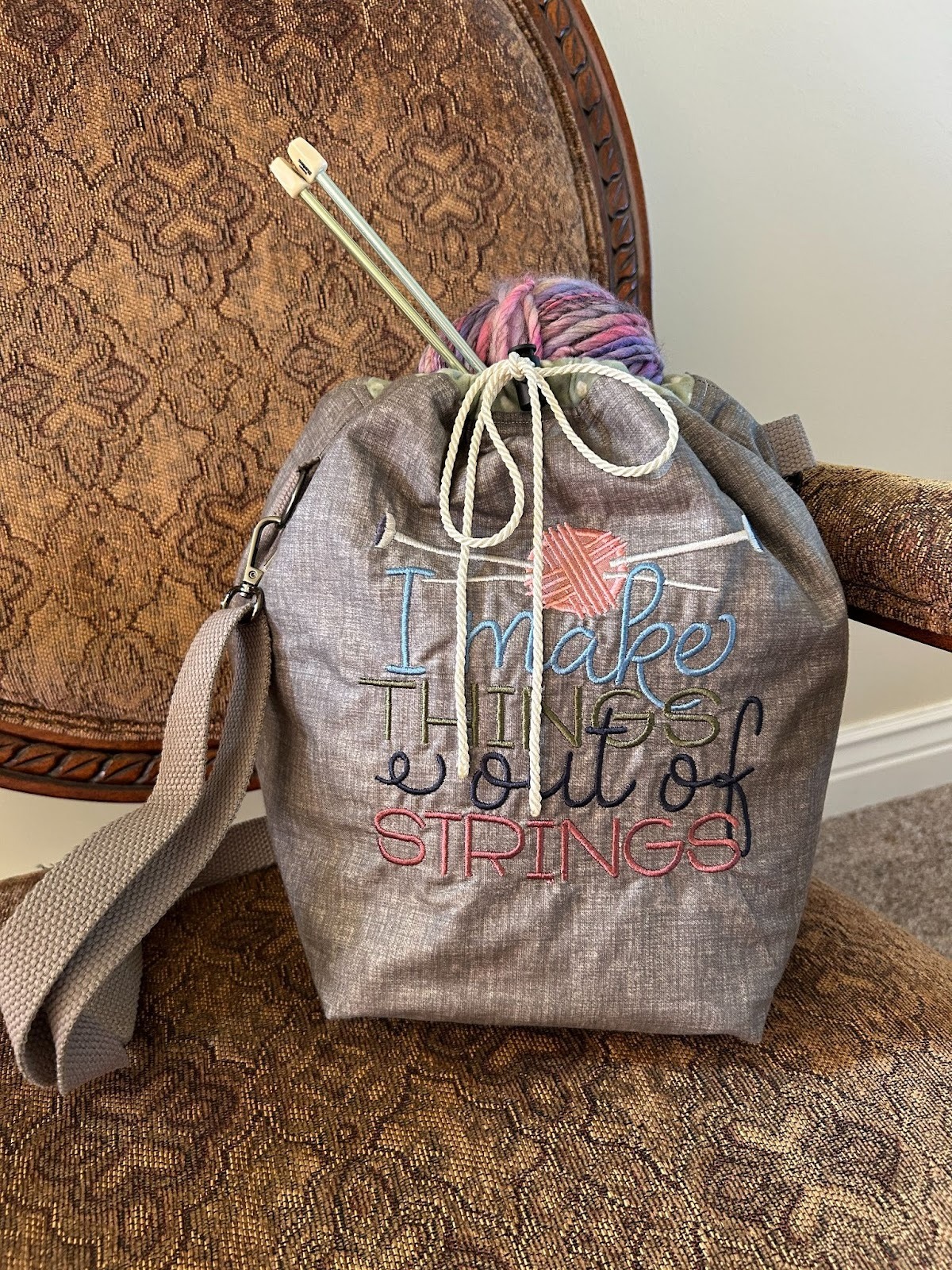 I love bags! I seem to need a new one all the time. So I wanted to make one that wasn’t too big but could easily carry my knitting projects. I love how this turned out and I can’t wait to use it!