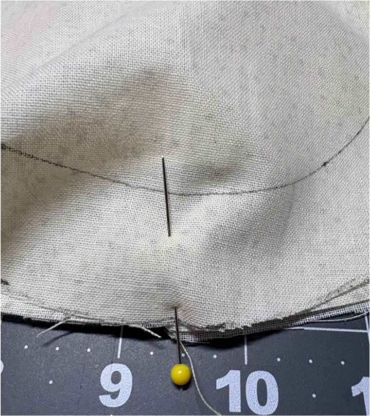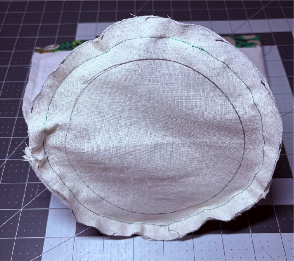Sew a basting stitch with a ½” seam all the way around the circle. Go slow and ease the two fabrics together.
