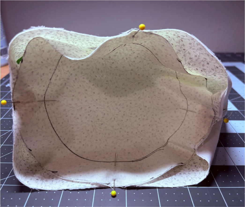 Line up each pin with the pins on the fabric for the pot, right sides together.