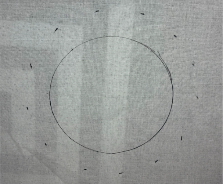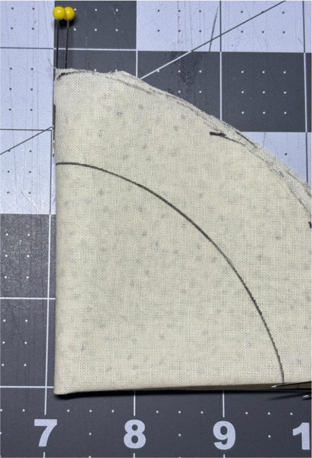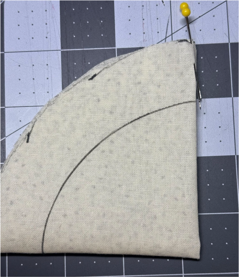 Keep pinning around the rest of the circle so both fabrics are held together securely.