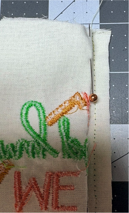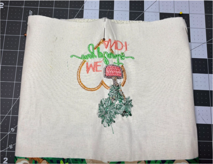 Put the hoop back onto your embroidery machine. Double-check that your design is in the right spot and fits between the marks on the fabric. Make any adjustments needed, and stitch out your embroidery design.