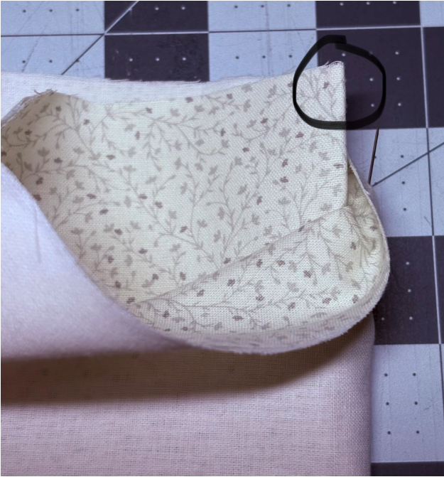 Position the sewn project inside out with the seam facing to the right. The top of the project will be at the bottom, as in the photo.