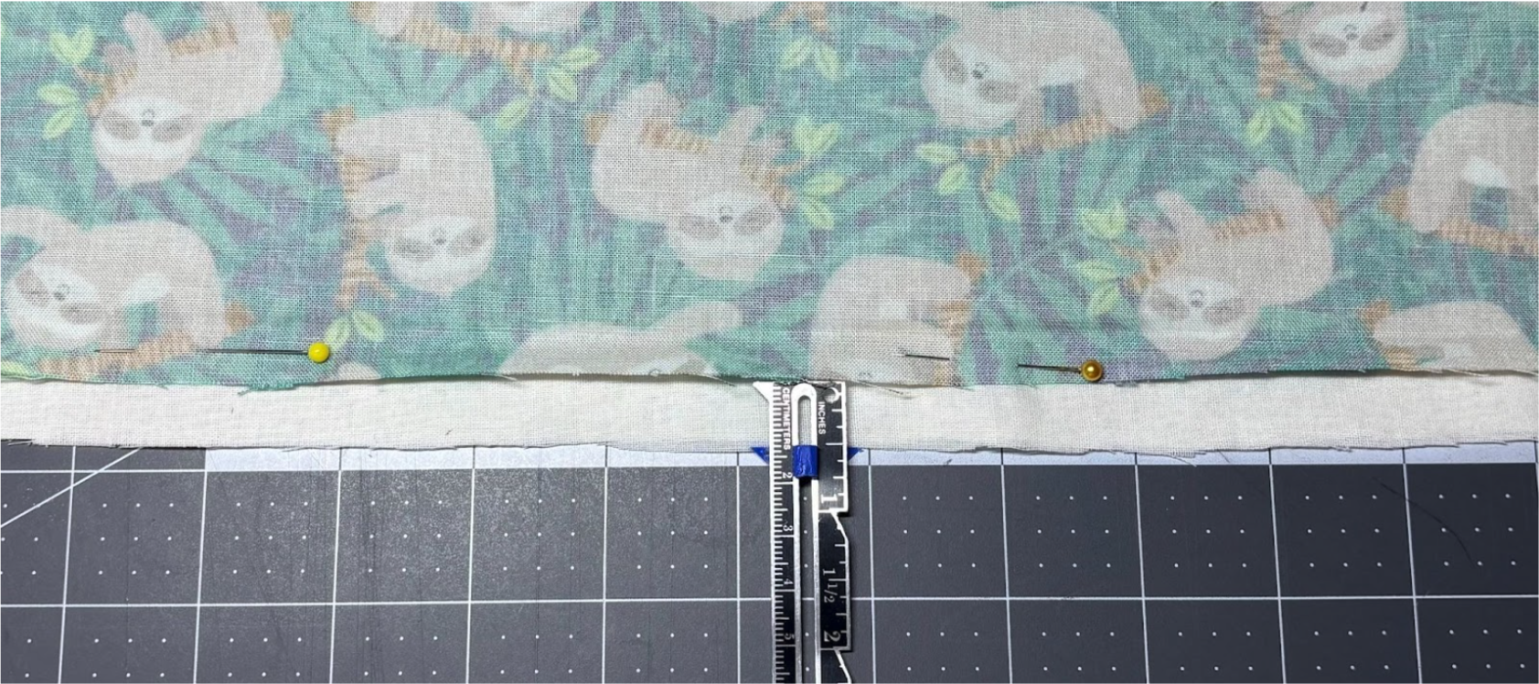 Place the band right side down on the wrong side of the main fabric. Measure down 1½” from the top of the main fabric and pin the edge of the band there.