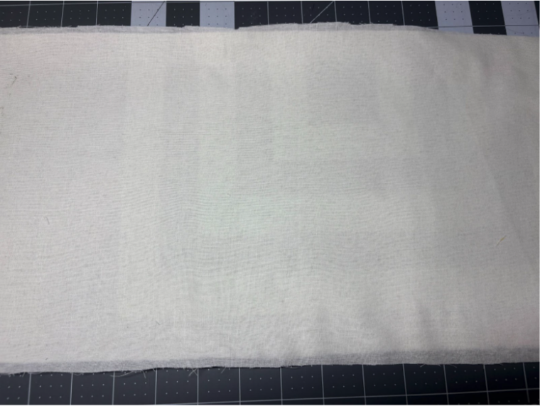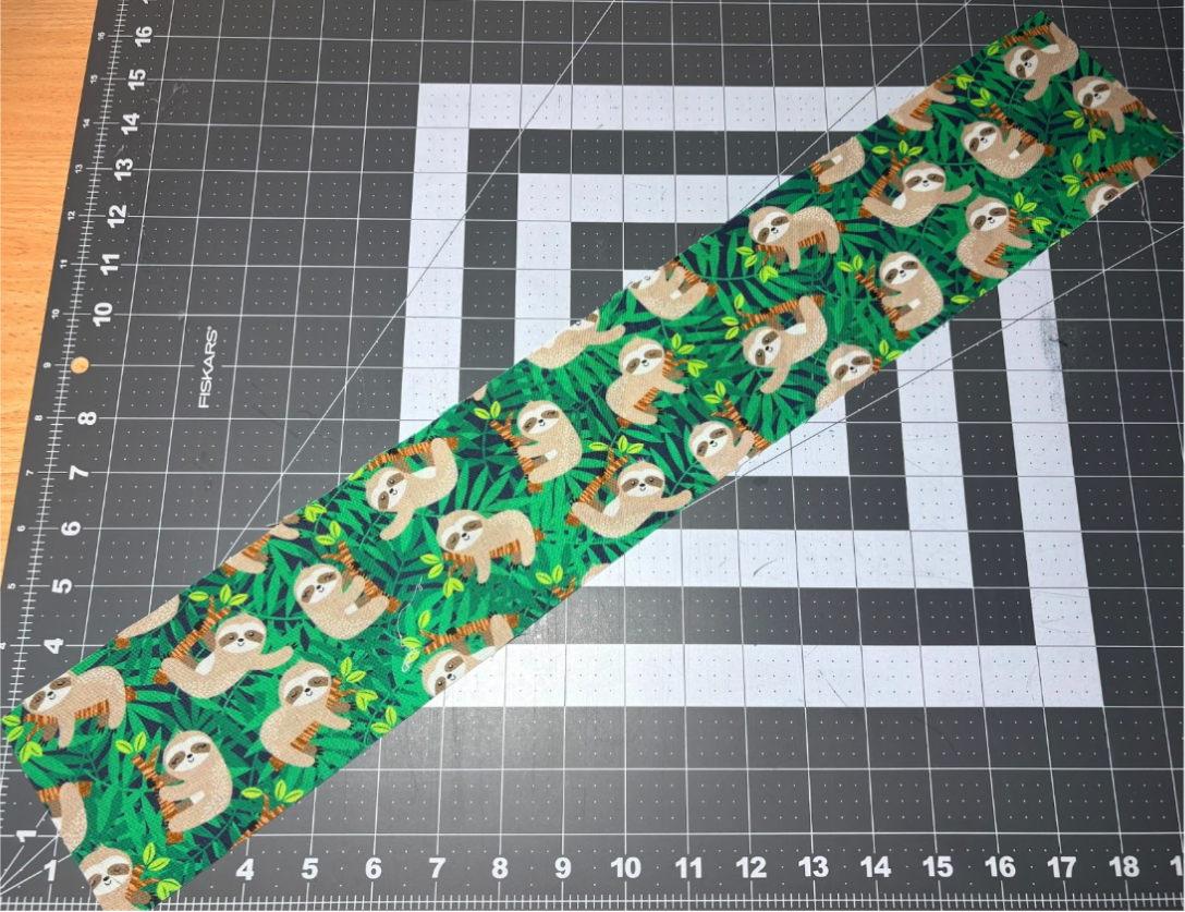 Now let's add a decorative band for polish. Cut a strip of fabric that’s 4” wide and as long as your main fabric piece.