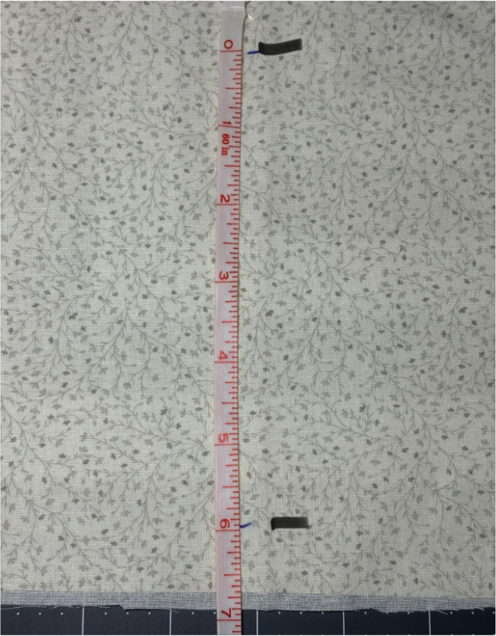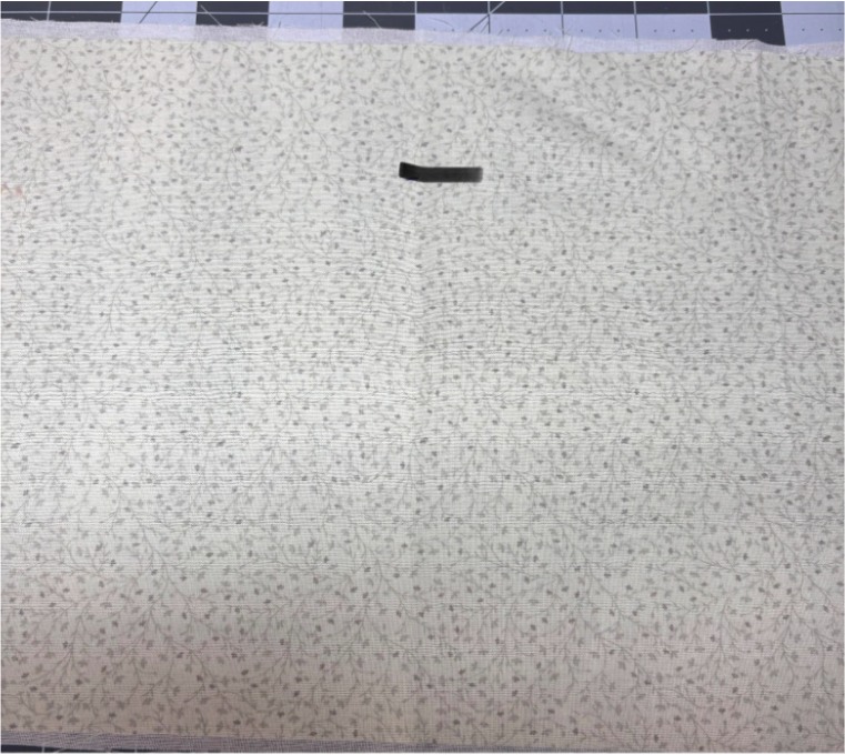 Fold your fabric in half so the short ends are together. On the center fold, measure down 2” and mark that spot with a pin or fabric marker.