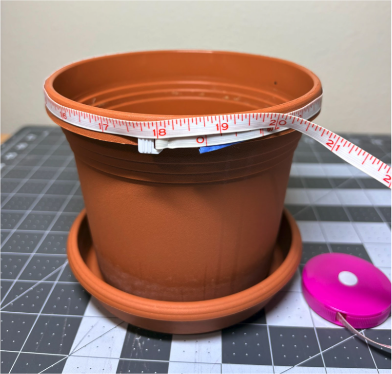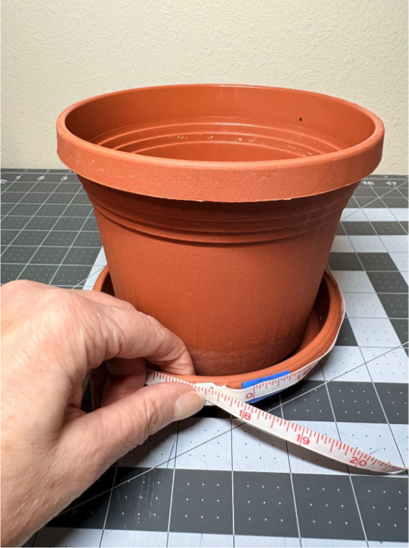Next, measure the widest part of the pot and add 2” to that measurement.