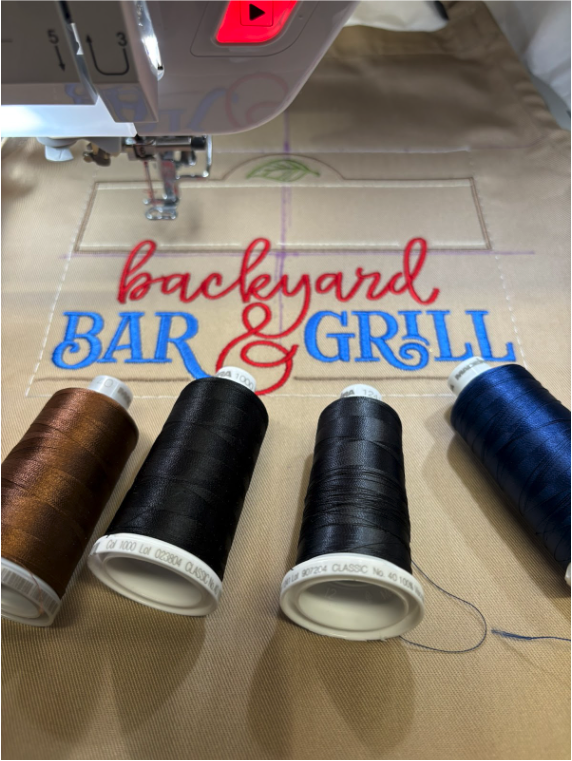 Because grilling can be a messy sport, I used tear-away stabilizer so the design will hold its shape after multiple washings.