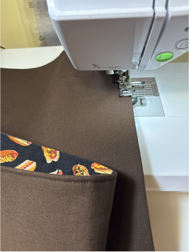 I gave the organizer a good press after it was turned and the corners poked out. I made sure the opening had the seam allowance tucked in, then topstitched all around the edges, ensuring the opening was stitched closed.