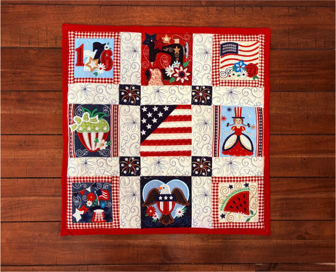 Add a festive, handmade touch to your summer table with a star-spangled embroidered table topper that celebrates red, white, and blue style. As we honor 250 years of American independence, this patriotic embroidery project is a meaningful way to stitch history into your home decor. Perfect for Independence Day, Memorial Day, or any red-white-and-blue-themed gathering, this table topper turns simple fabric along with Designs by JuJu’s new Star Spangled Stitches set into a statement piece that shines at picnics, barbecues, and family dinners.