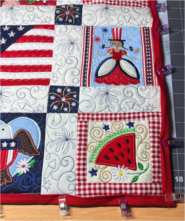 If you want to keep going, we’ll use the Patriotic 1 Quilting Backdrops Design to make the sashing.