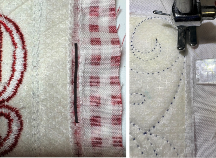 Next, stitch the second placement line. Repeat the same three steps as before.