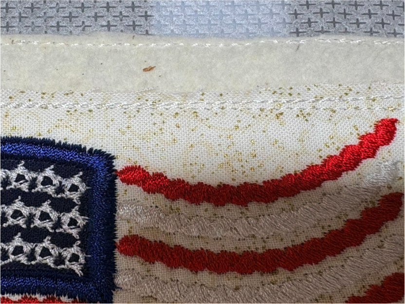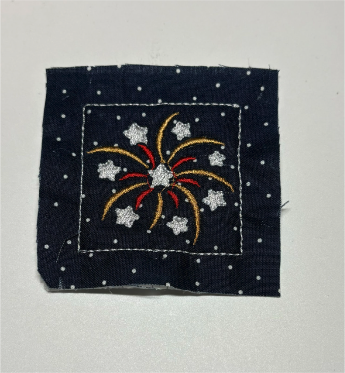 Finish by adding the stars, then remove the design from the hoop. Trim the sides ½” from the outer stitches.