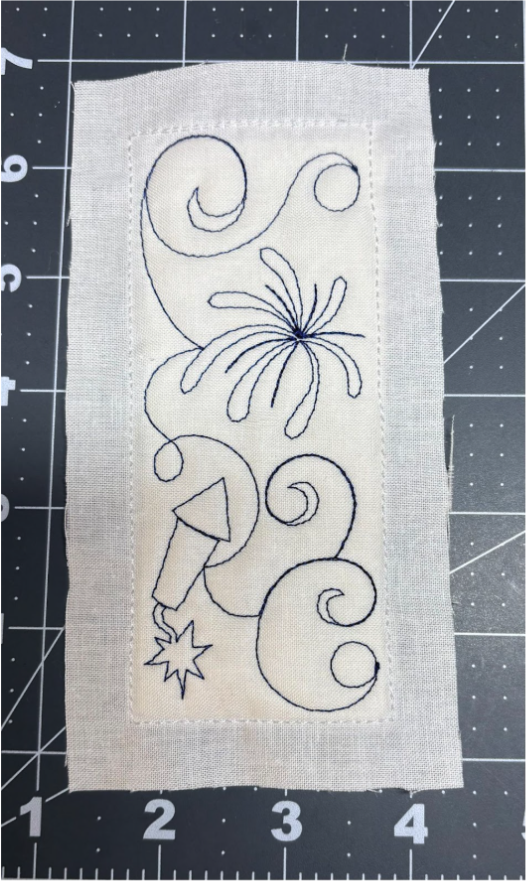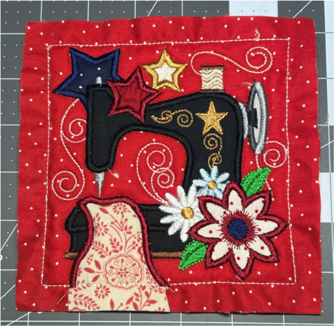 The first technique is to add a border completely or partially around a finished block. This is done before you remove the block from the hoop. Once the block is finished, it should look like this.