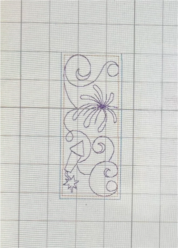 Load the quilting backdrop design onto the machine. Find the 2” sashing size that matches your block size.