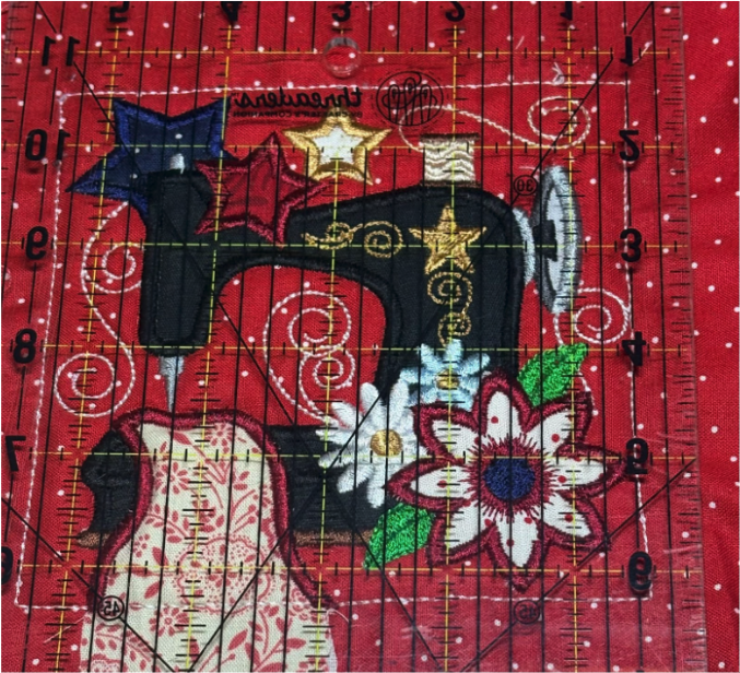 Complete all the applique and decorative stitching. After you finish, the next steps will add the border. Start by stitching a placement line for the first border strip.