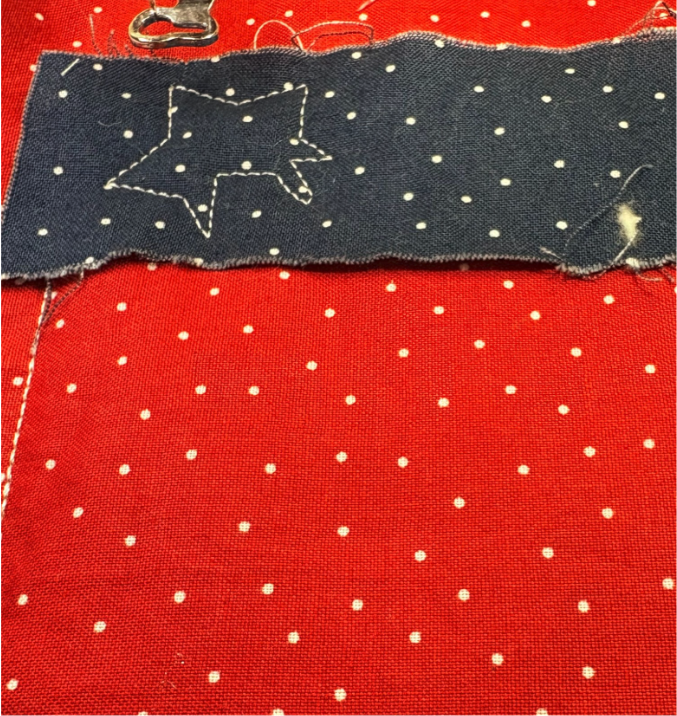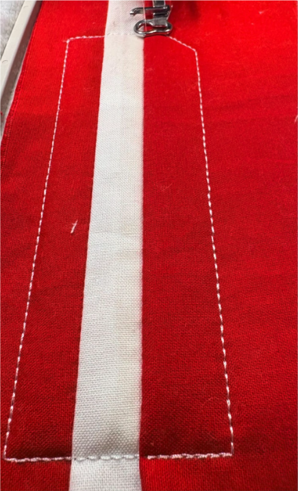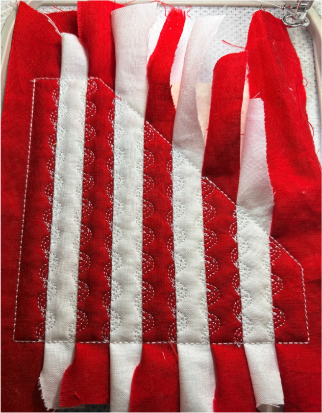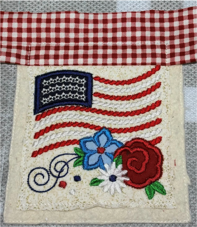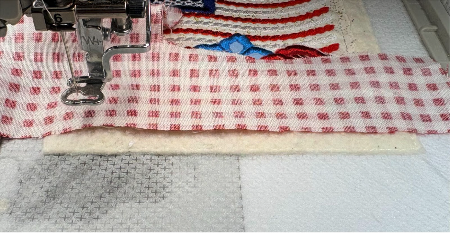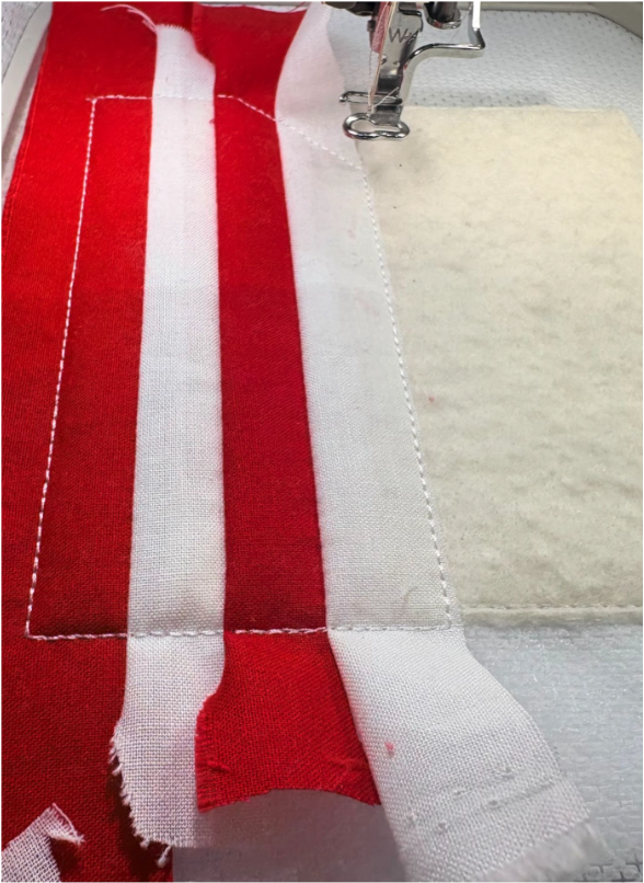 Next, stitch the placement line for the first stripe of the flag.