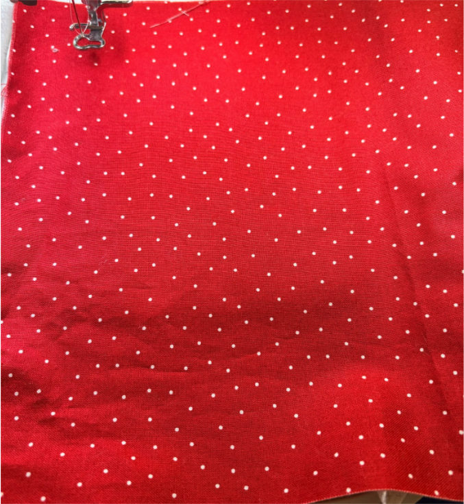 Place your fabric down so it extends at least ½” past the stitches on all sides.