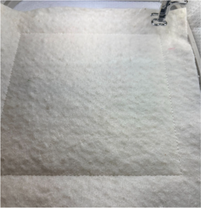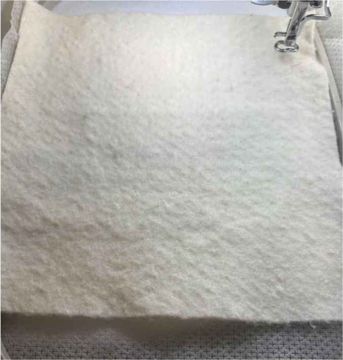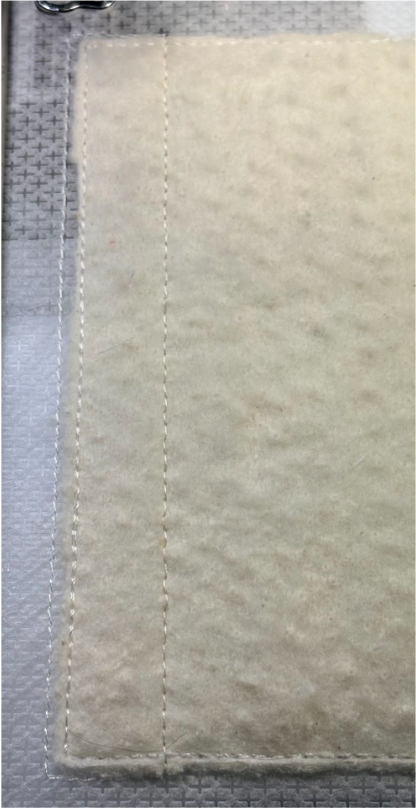 Place the batting over the stitches, ensuring they are completely covered.