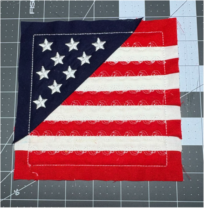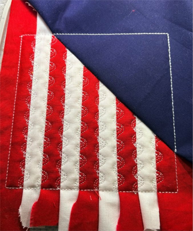 Sew the next step, which places the line for the second stripe of the flag.
