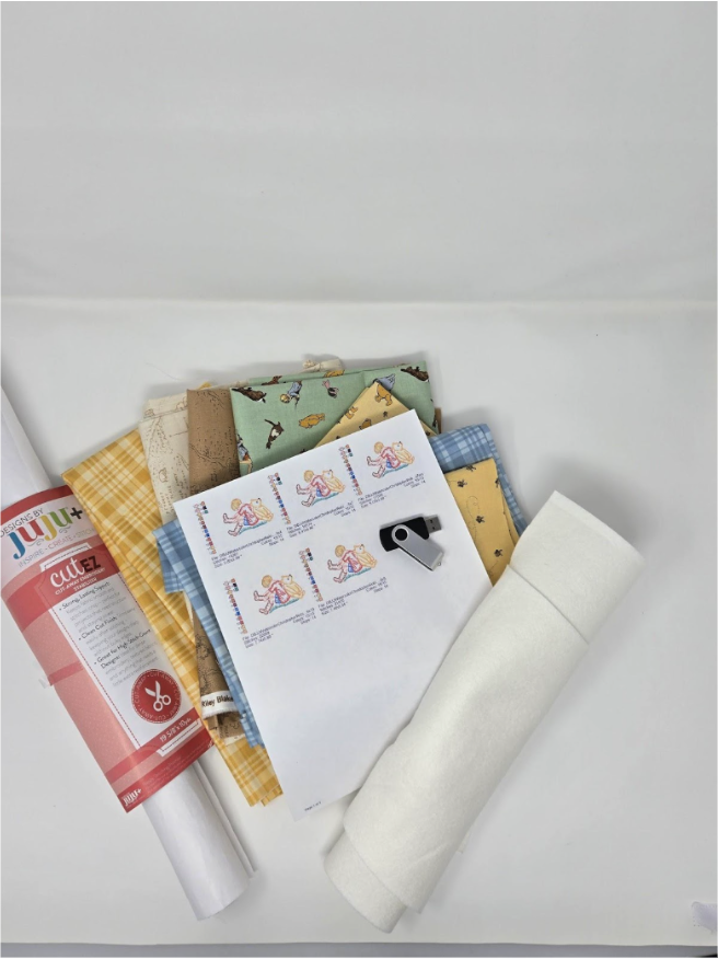 Download your designs and QB files. Gather your fabrics and stabilizers. I only printed one design, but all are loaded on my USB.