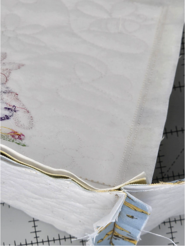 For my second basket I used the 4” designs. I didn’t have to resize anything, but remember to move the design to about an inch from the bottom of your quilting. Go ahead—make a second one while everything is fresh in your mind! For the second basket I used the Honey Bees, Butterflies and Flowers QB. It is also a directional design so be sure to choose the vertical 6x8 QB. Again, I ran the quilting twice for the side panels without characters on them.