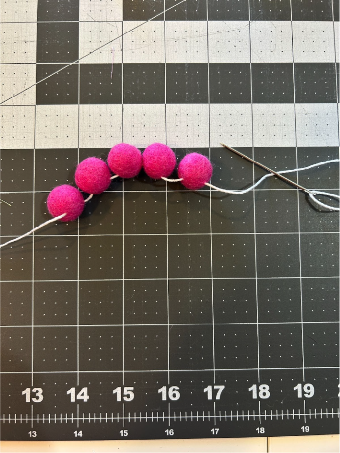 I thought it would be fun to have some yarn tassels on my garland, and they are easy enough to make. I used my 3½” x 18” ruler and a ball of yarn to make them, but you can make them with anything that you can wrap the yarn around that is the length you want them to be (a piece of cardboard or wood, for example).