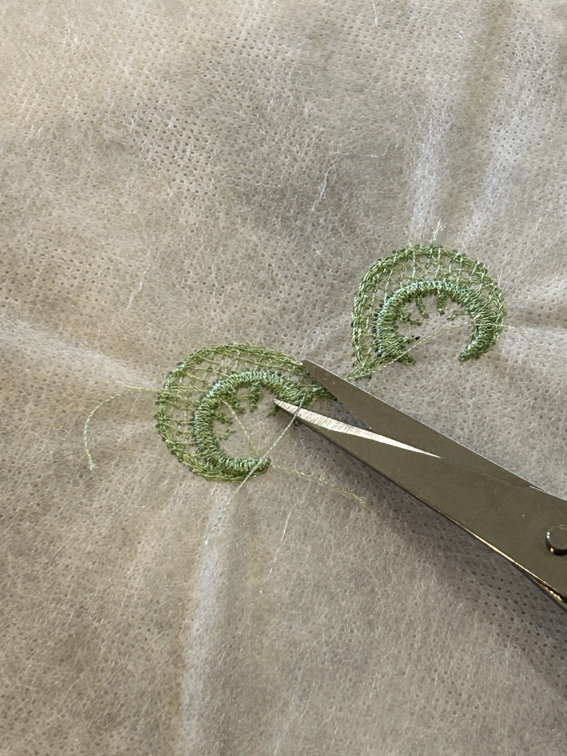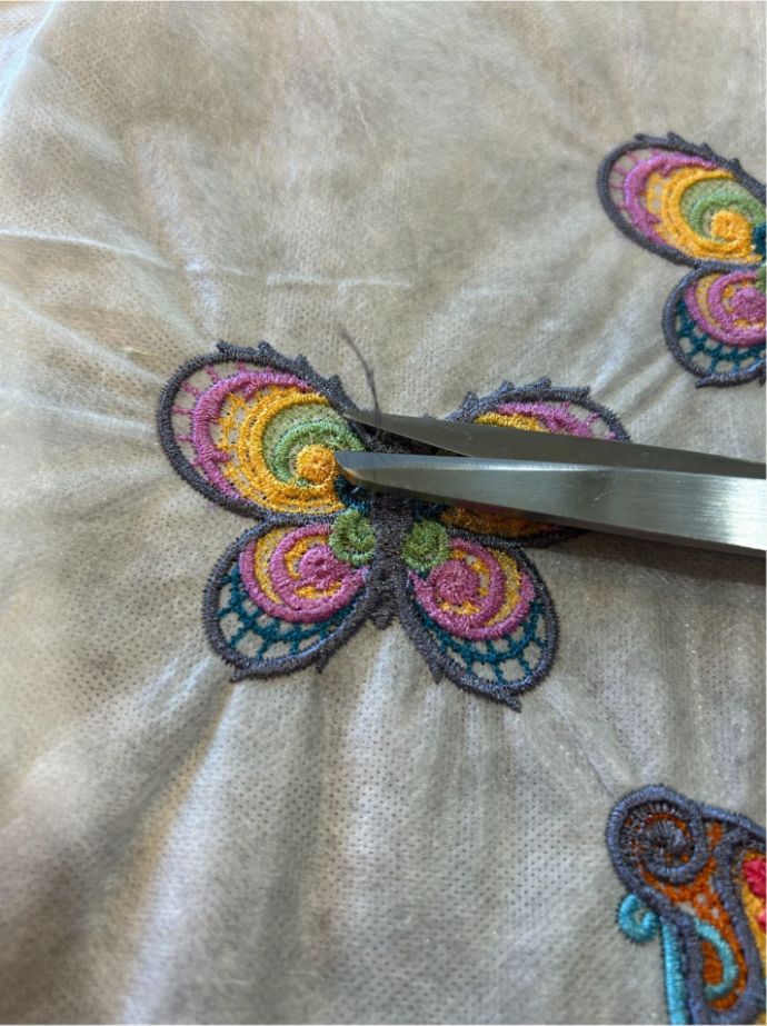 And trim the stabilizer close to the stitches. I give about ¼” around the design to ensure I don't clip a stitch. I’m not super precise with this step.