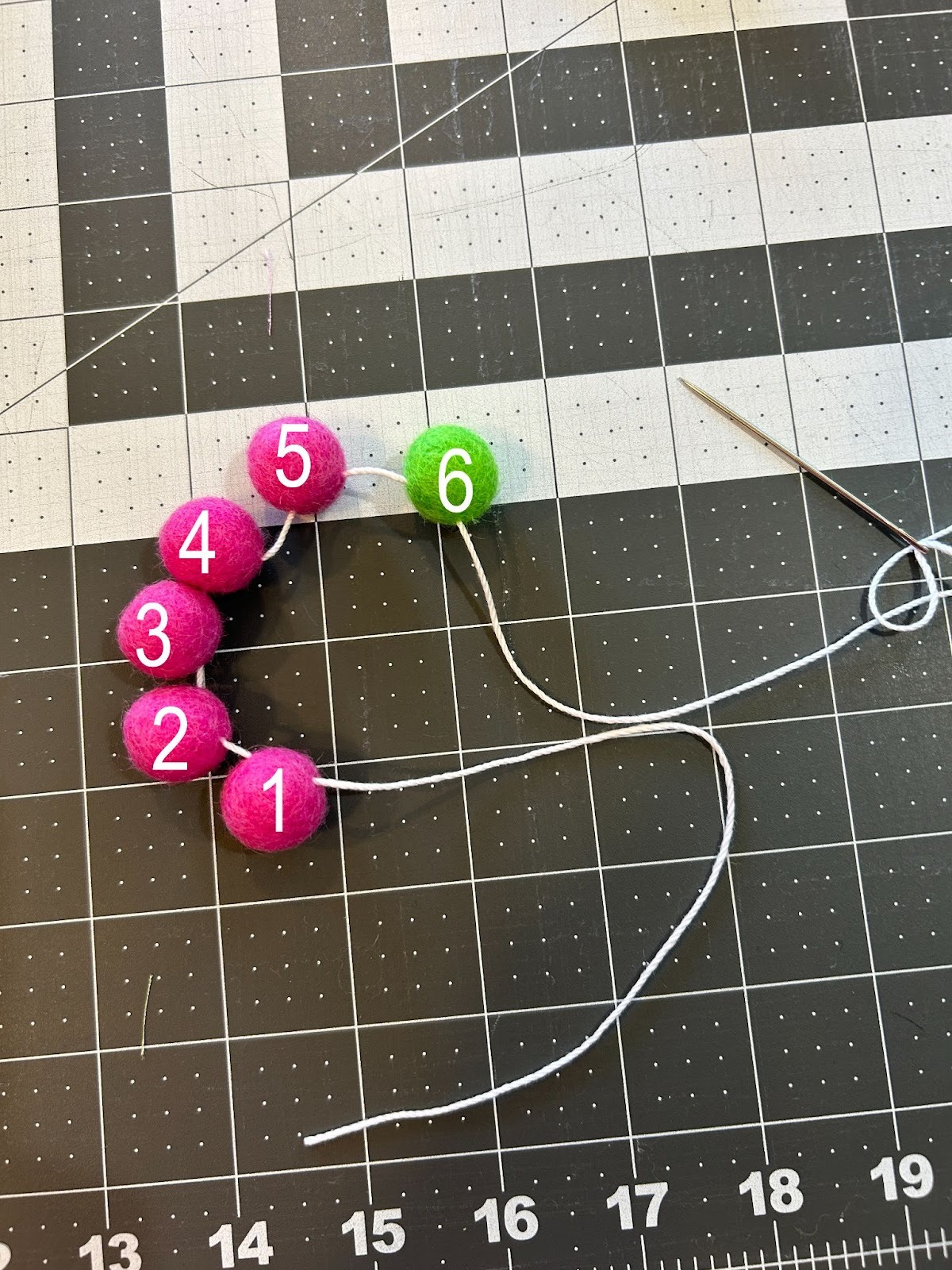 Once they have all been threaded, number them according to the order in which they were put on the string.