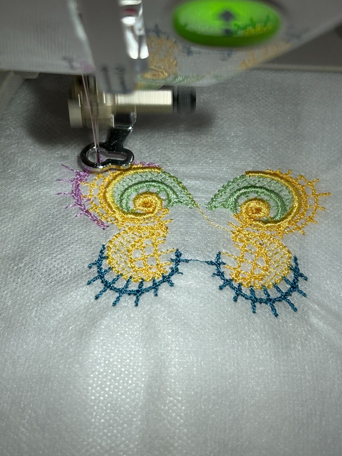 One of the best ways to make FSL successful is to match your bobbin thread to your top thread. The designs will be seen from both sides, so matching top thread and bobbin thread makes them look finished on both sides.