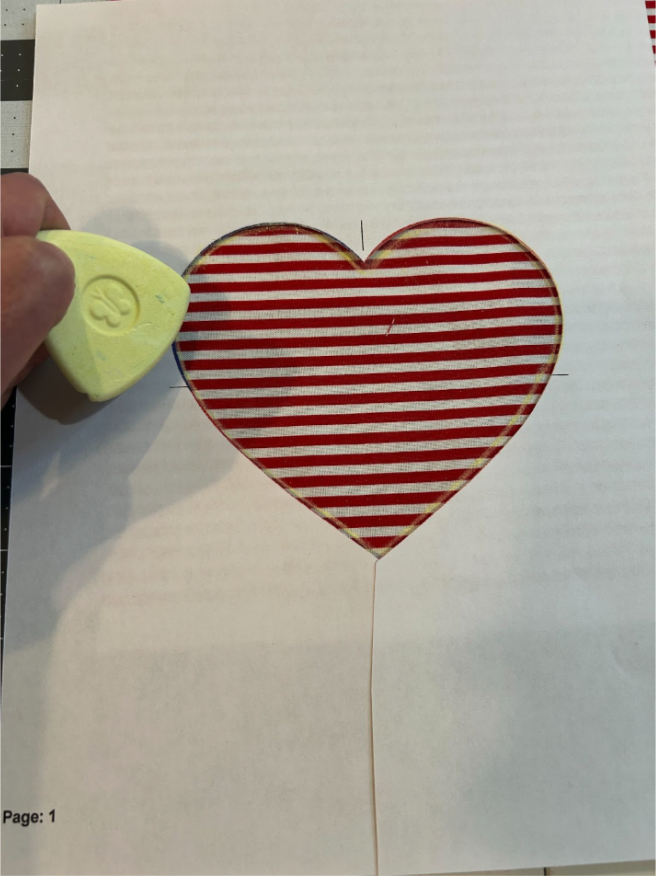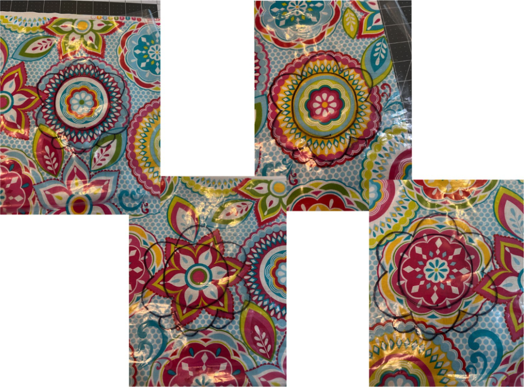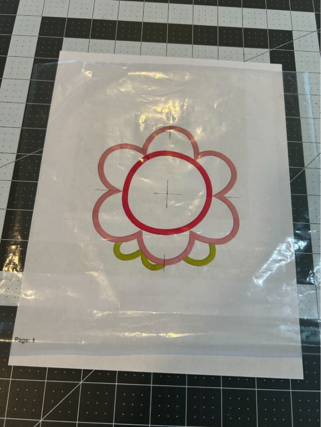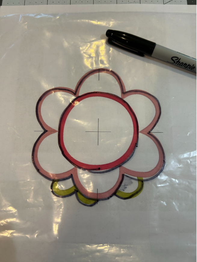 This is when the plastic method comes in handy. I can slide it around the fabric and see how it will look in the center of the flower with the other pieces drawn on.