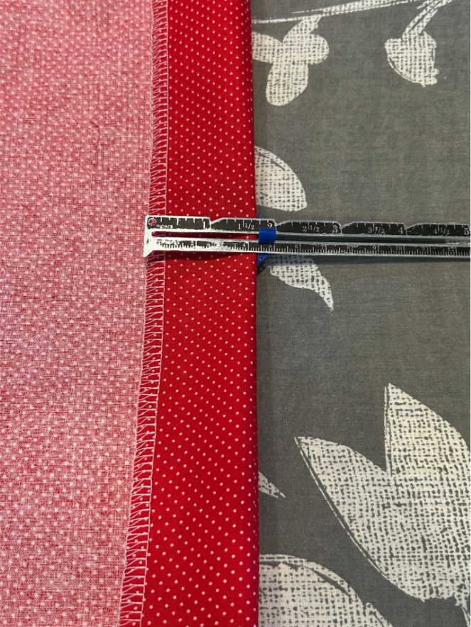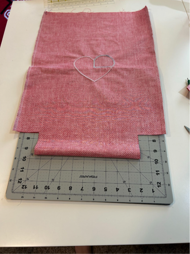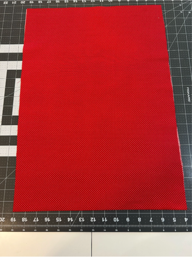 Choose your background fabric for your gift bag. You can make it any size you’d like, but today I’m going to be working with a 15” x 42” piece of fabric. I fold it in half vertically so that I am working with a 15” x 21” piece that I can see on my working surface.