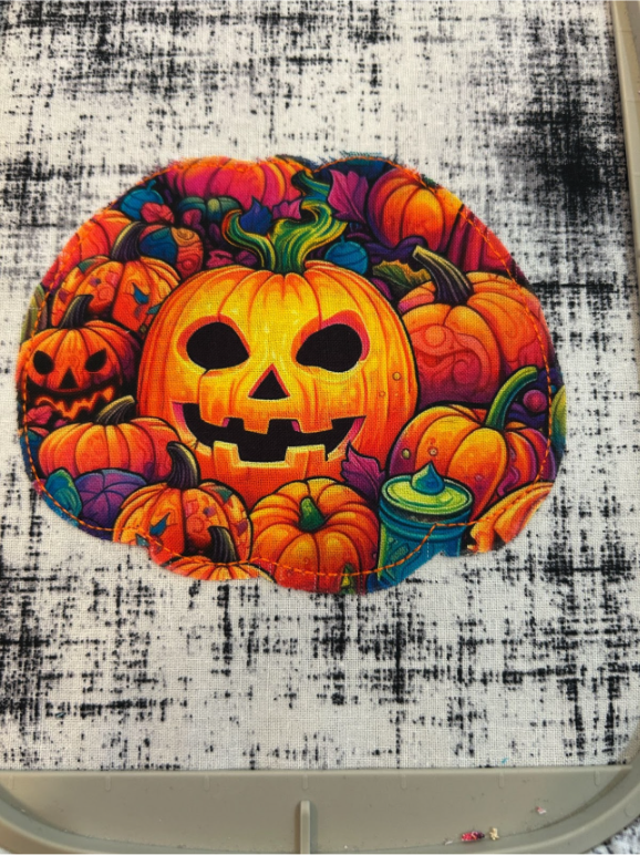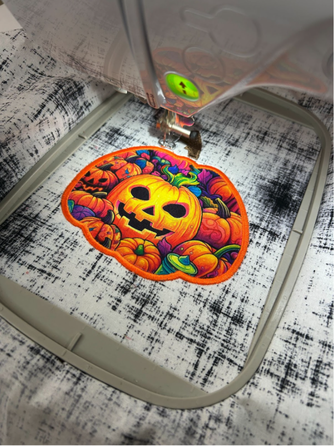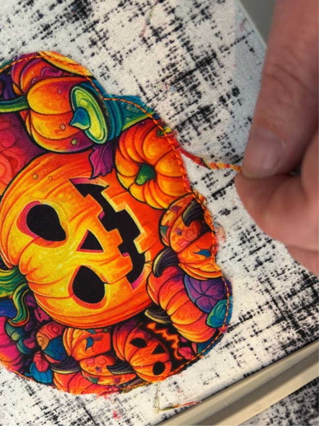 Stitch out the finishing stitches, but skip the ones that are inside the pumpkin.
