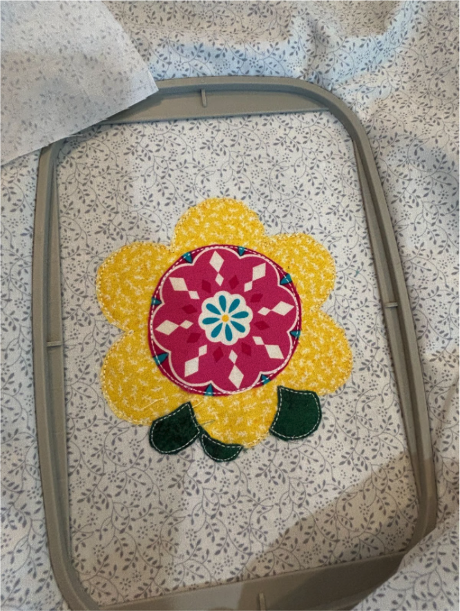 When we get to the placement stitches for the center of the flower, we will figure out our fussy cut piece.