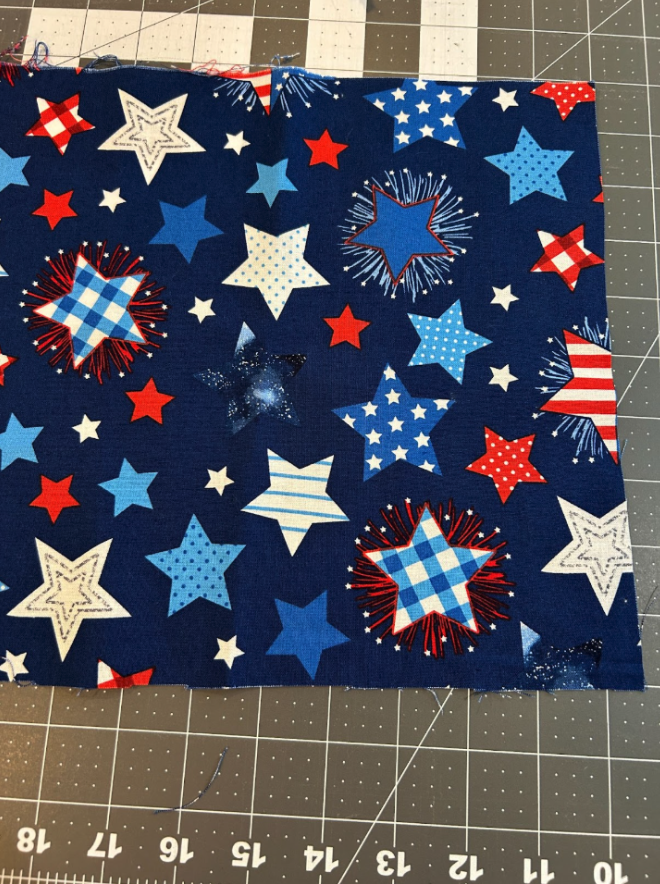 For the blue piece of my heart flag, I want to use the blue star with the white stars on it from this fabric.