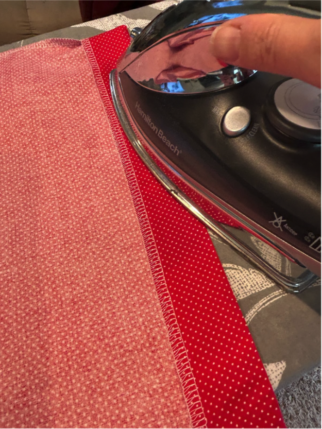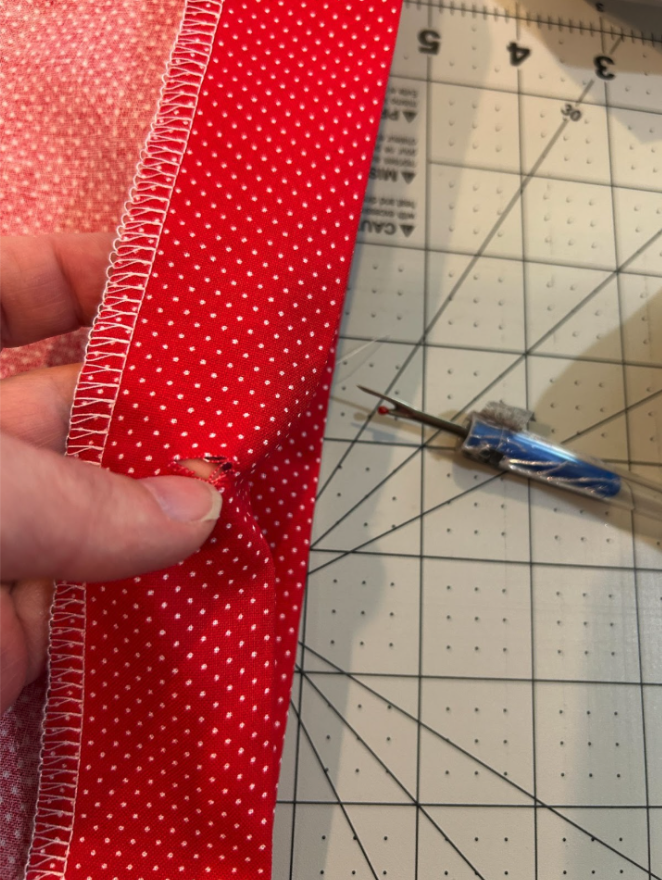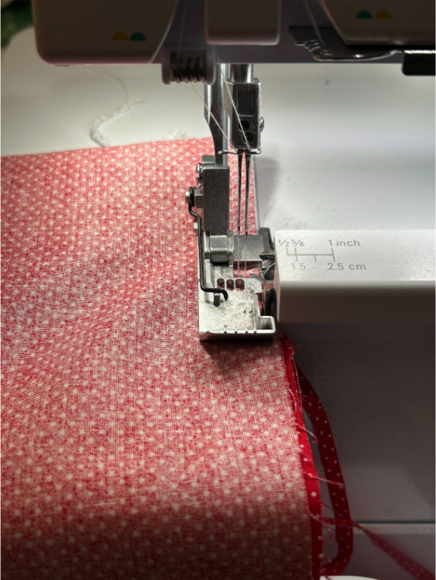 Our next step is to finish the top raw edge. You can do a narrow hem, but I used my serger to finish the edge.