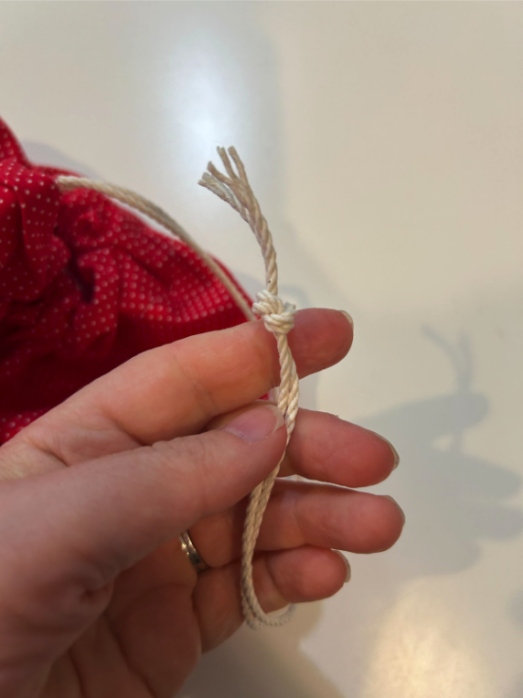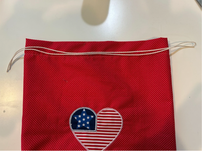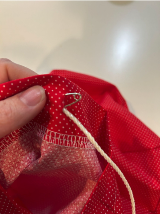 If it’s a bag you plan on reusing often, you can make a small buttonhole in the casing to have a more finished edge.