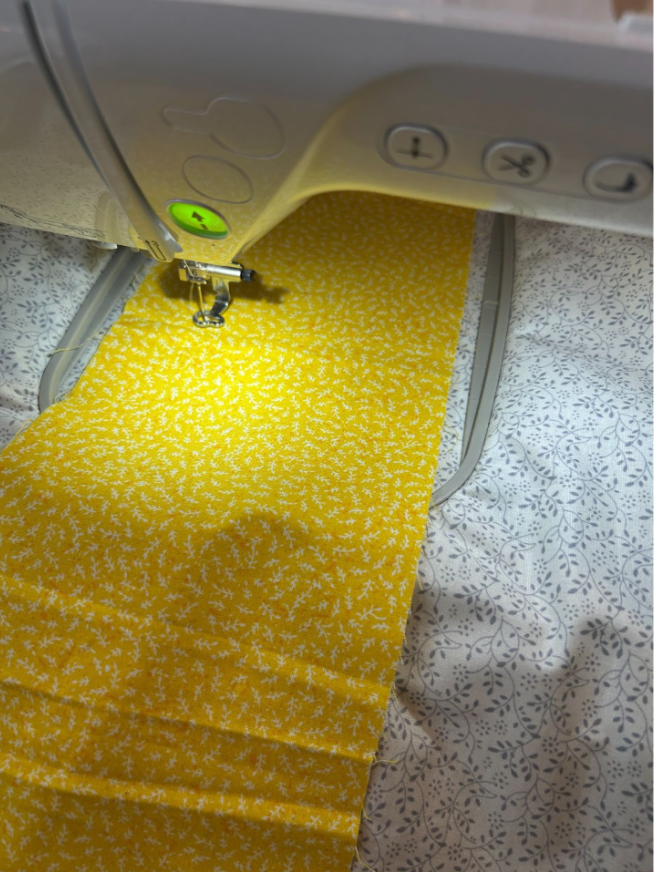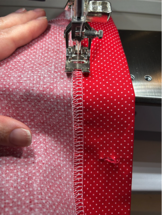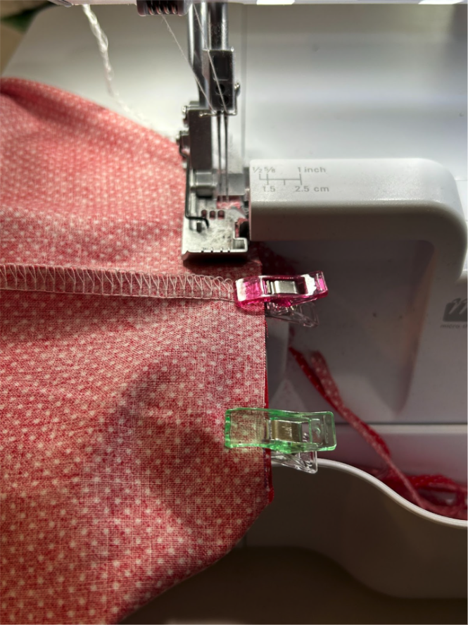 After creating a small space for the ribbon to come through, stitch down the casing all the way around the top.