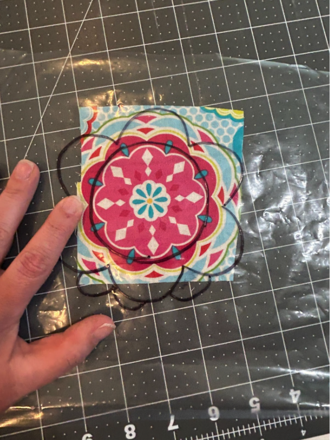 Trace the design with a permanent marker. I will be fussy cutting the center of the design, but make sure you trace the whole design.