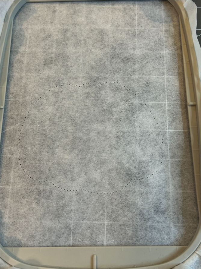 For this method we will use our machine to make the template. This one works well if you don’t have access to a printer. We will hoop some tear-away stabilizer and run the placement stitch. I didn’t use thread (and had to turn off my thread sensors for this to work), but stitching it out with thread is okay too.